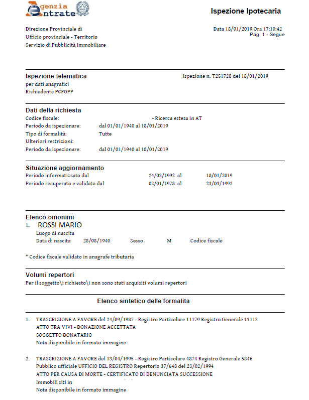 Con le ispezioni ipotecarie (anche dette visure ipotecarie o visure in Conservatoria) è possibile avere tutte le informazioni riguardanti le tipologie di formalità presenti nella banca dati dei Registri Immobiliari.