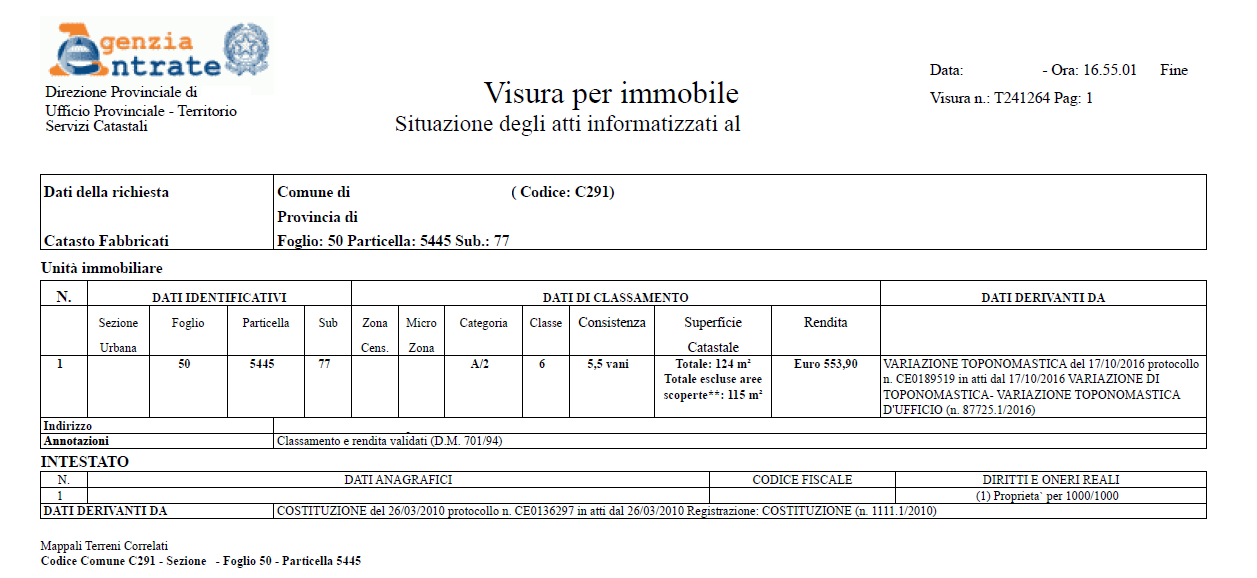 – Comune catastale (il confine territoriale individuato catastalmente è coincidente con il corrispondente confine amministrativo comunale. L’utente può quindi fare riferimento alla denominazione del Comune amministrativo).